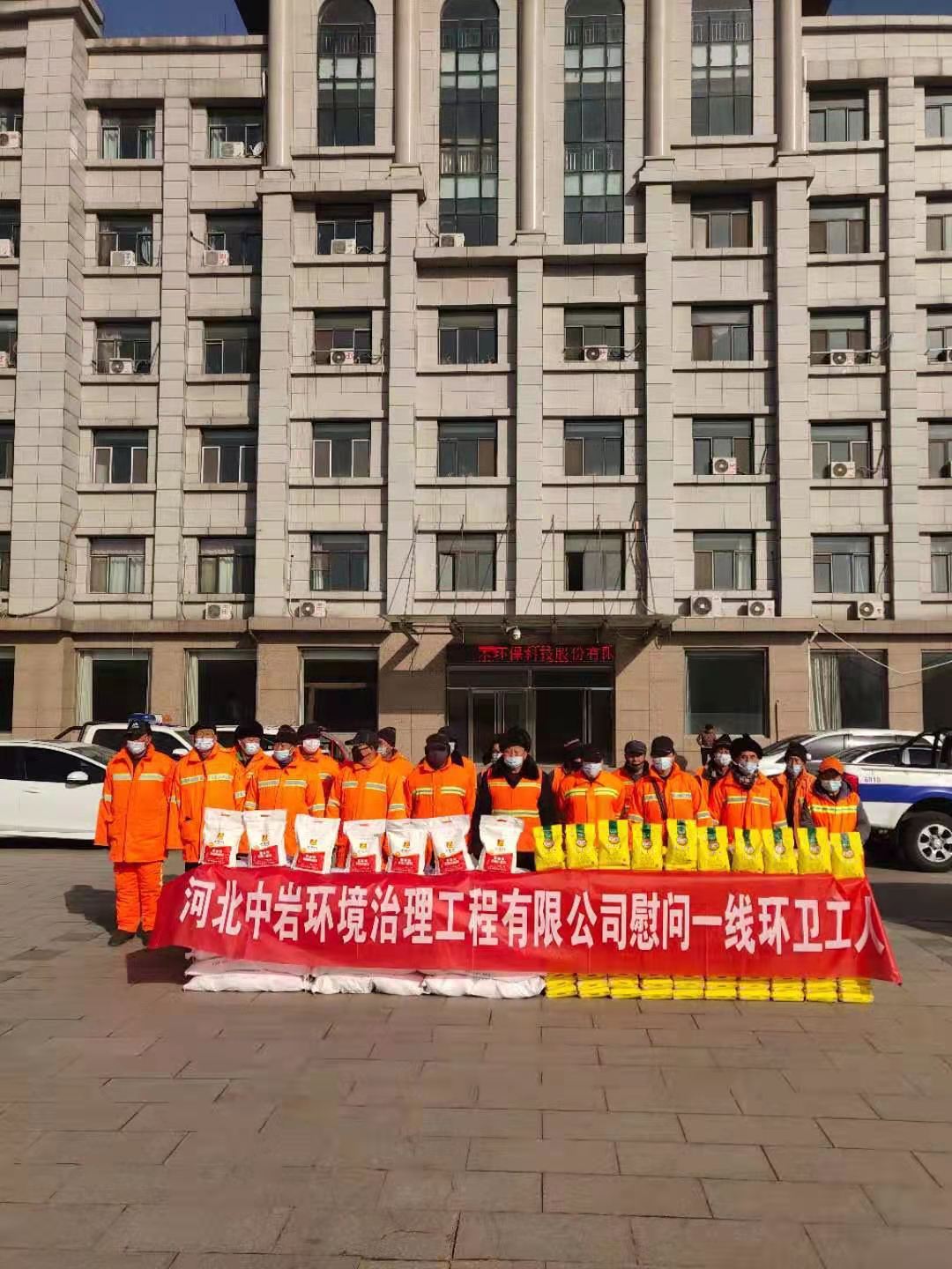 為了表達對一線環衛工人的關懷和祝福,感謝他們在春節期間堅守工作崗位,為廣大市民營造干凈、整潔、祥和的過節環境。河北中巖環境治理工程有限公司總經理帶領公司副總經理等管理層一行帶著價值5萬元的消毒劑、除臭劑和價值1萬元的米面油等生活用品來慰問工作在一線環衛工人,給一線環衛工人送來新春慰問,致敬堅守在一線的環衛工作者們。